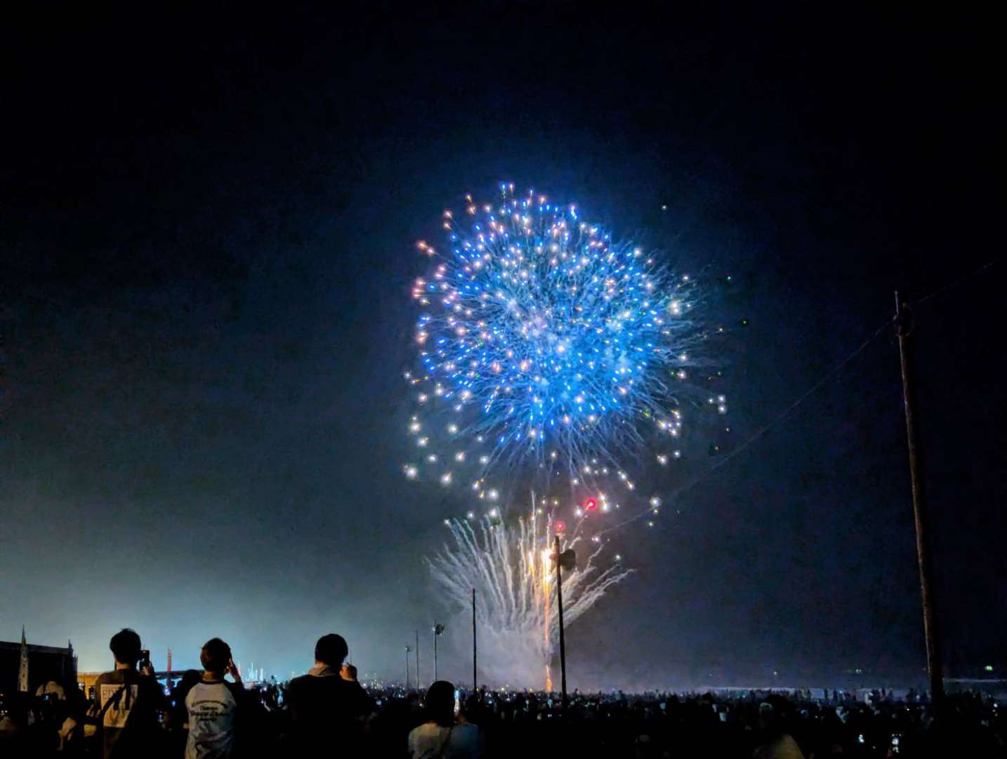 去年は曇り空と強風で綺麗に見えずらかった花火ですが、今年は綺麗に見えました。